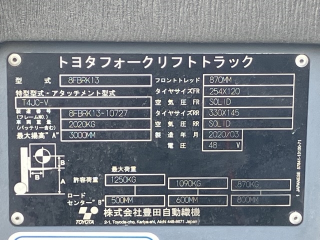 Xe nâng điện cũ đứng lái 1.3T TOYOTA 8FBRK13, hàng đã qua sử dụng (Nhật Bản) sản xuất 2020, mã xe TV.E213-TS