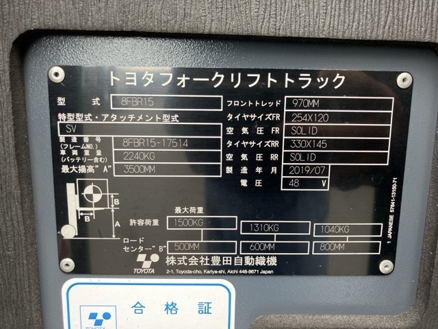 Ưu điểm Xe nâng điện cũ đứng lái 1.5T TOYOTA 8FBR15, hàng đã qua sử dụng (Nhật Bản),sản xuất năm 2019,mã xe TV.E223-TS