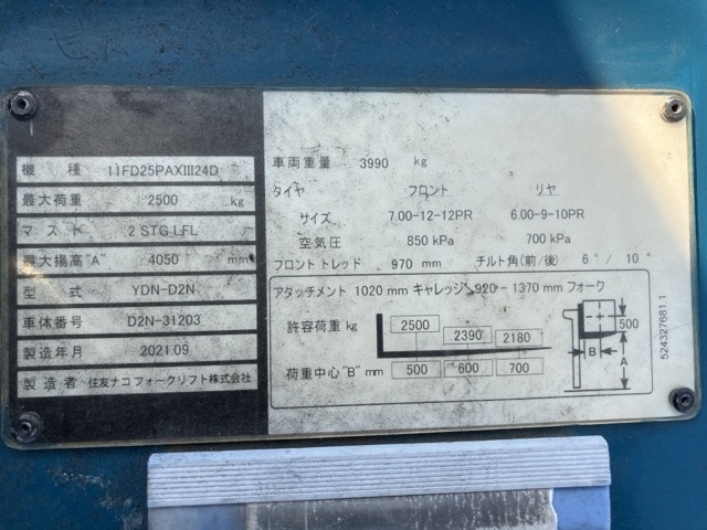 Xe nâng điện Nhật Bãi 2.5T SUMITOMO model 11FD25PAXIII24D, hàng đã qua sử dụng (Nhật Bản) sản xuất 2021, mã xe TV.D042